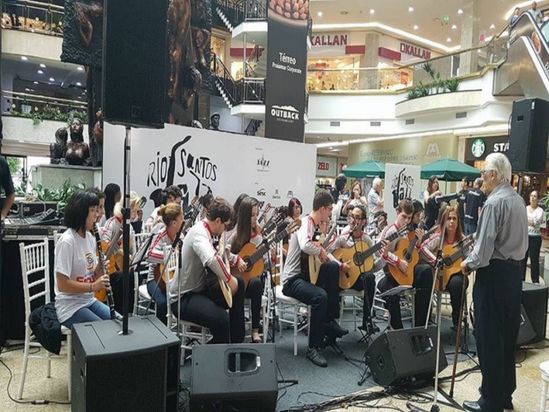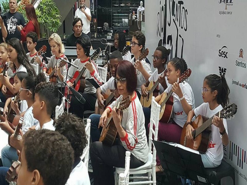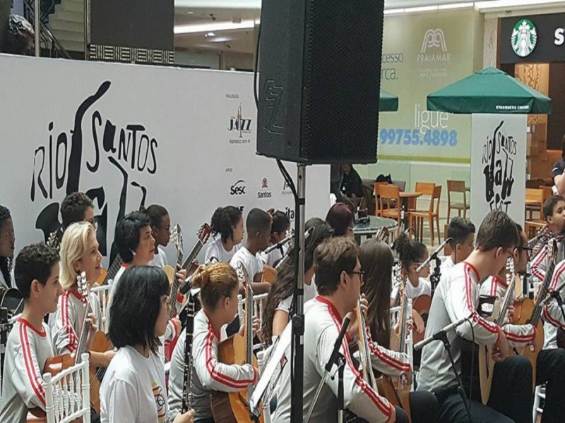 Sob regência do maestro Antonio Manzione, a Orquestra Brasileira de Violões Conjunto de Violões do Projeto Esculpir fizeram uma linda apresentação no Rio Santos Jazz Fest, na manhã deste sábado (29), no Praiamar Shopping, em Santos/SP. O objetivo principal do festival é trazer entretenimento para o público da Baixada Santista através de um estilo que é um dos principais alicerces da música popular mundial, que é o Jazz.