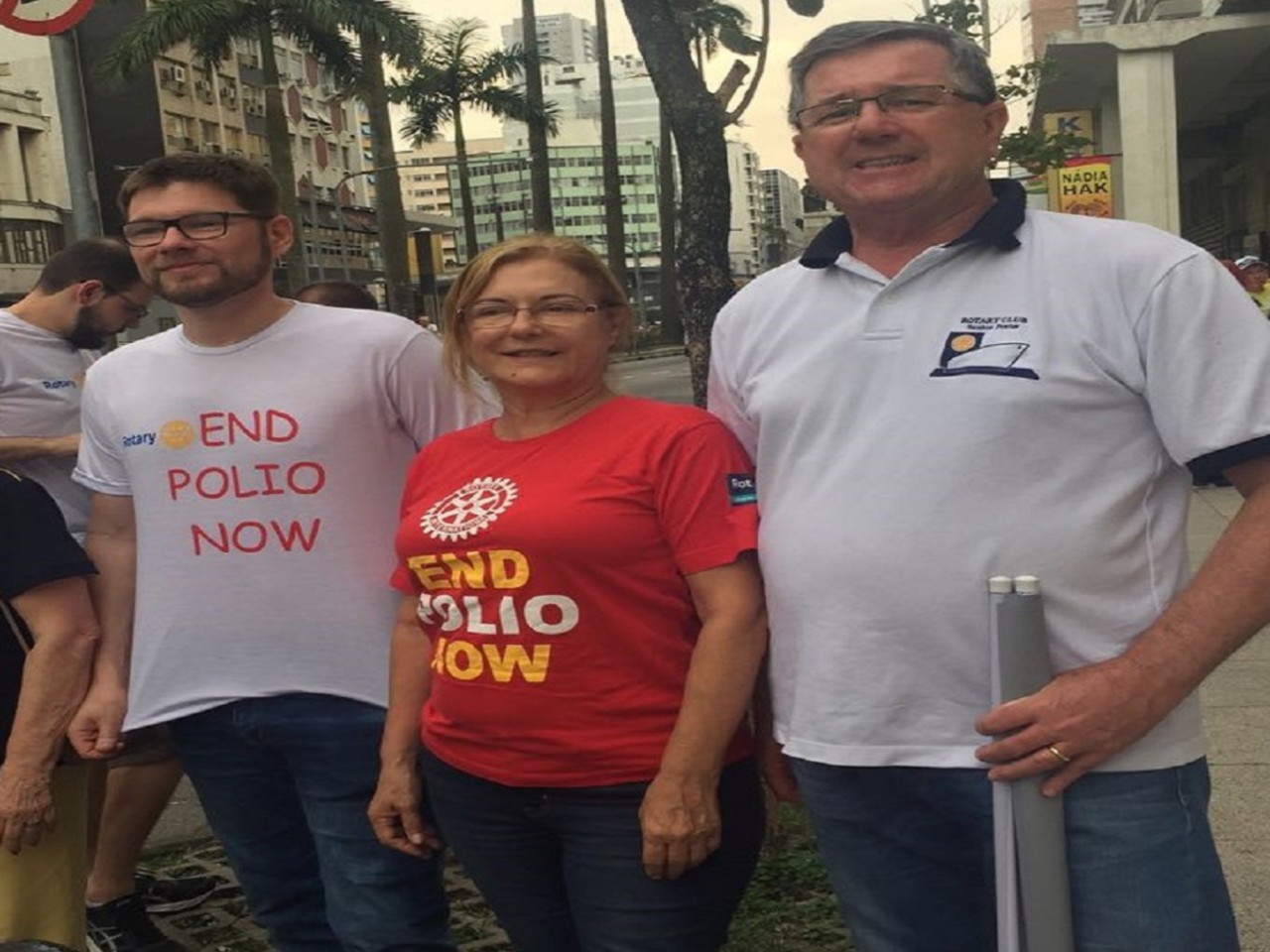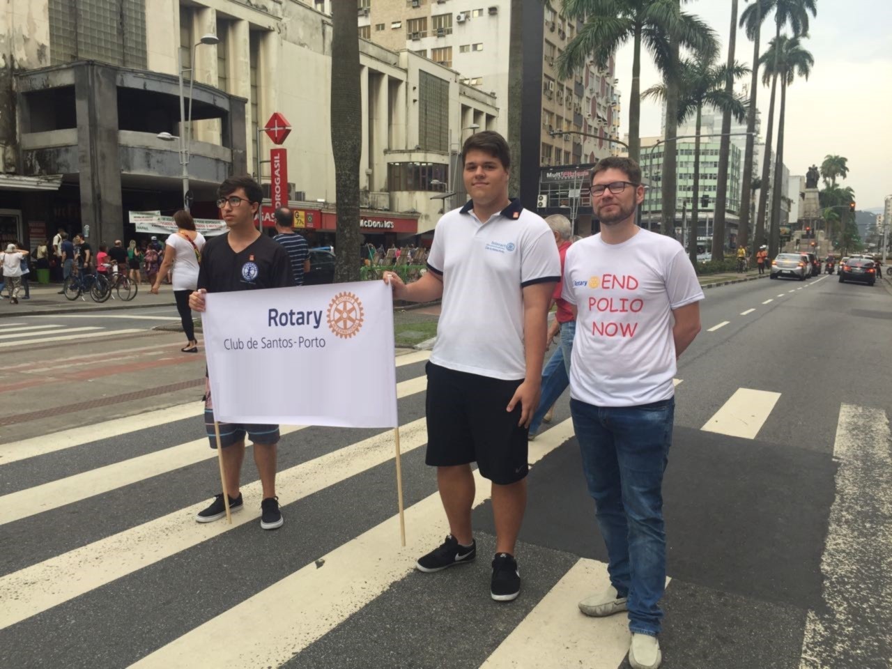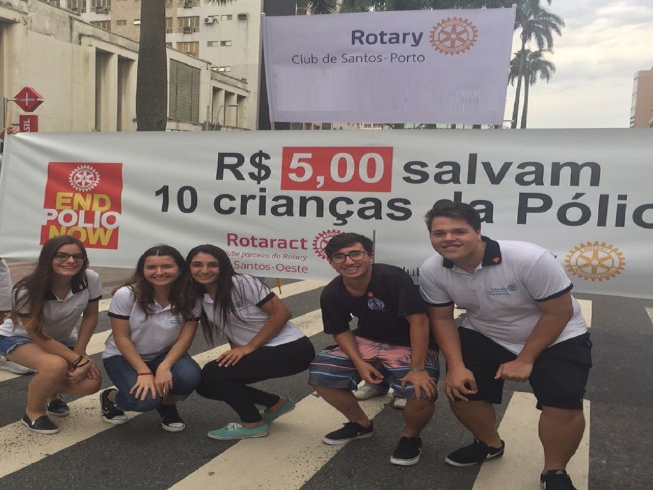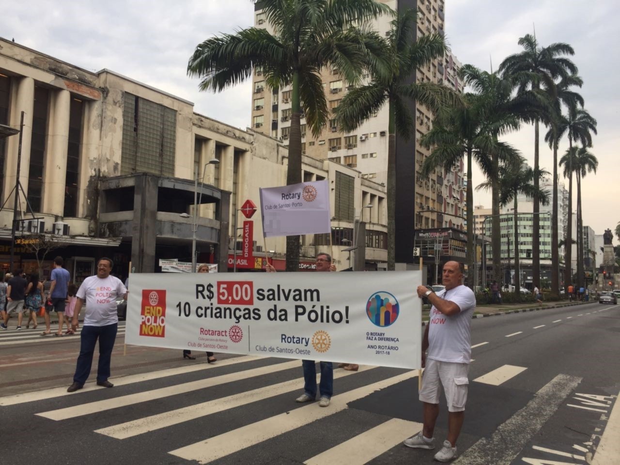 Rotarianos e Interactianos do Santos-Porto participaram de ação em prol da END PÓLIO NOW, realizada no Bairro do Gonzaga em Santos, em frente ao Shopping Parque Balneário, com pedágio e venda de Pins da Pólio.