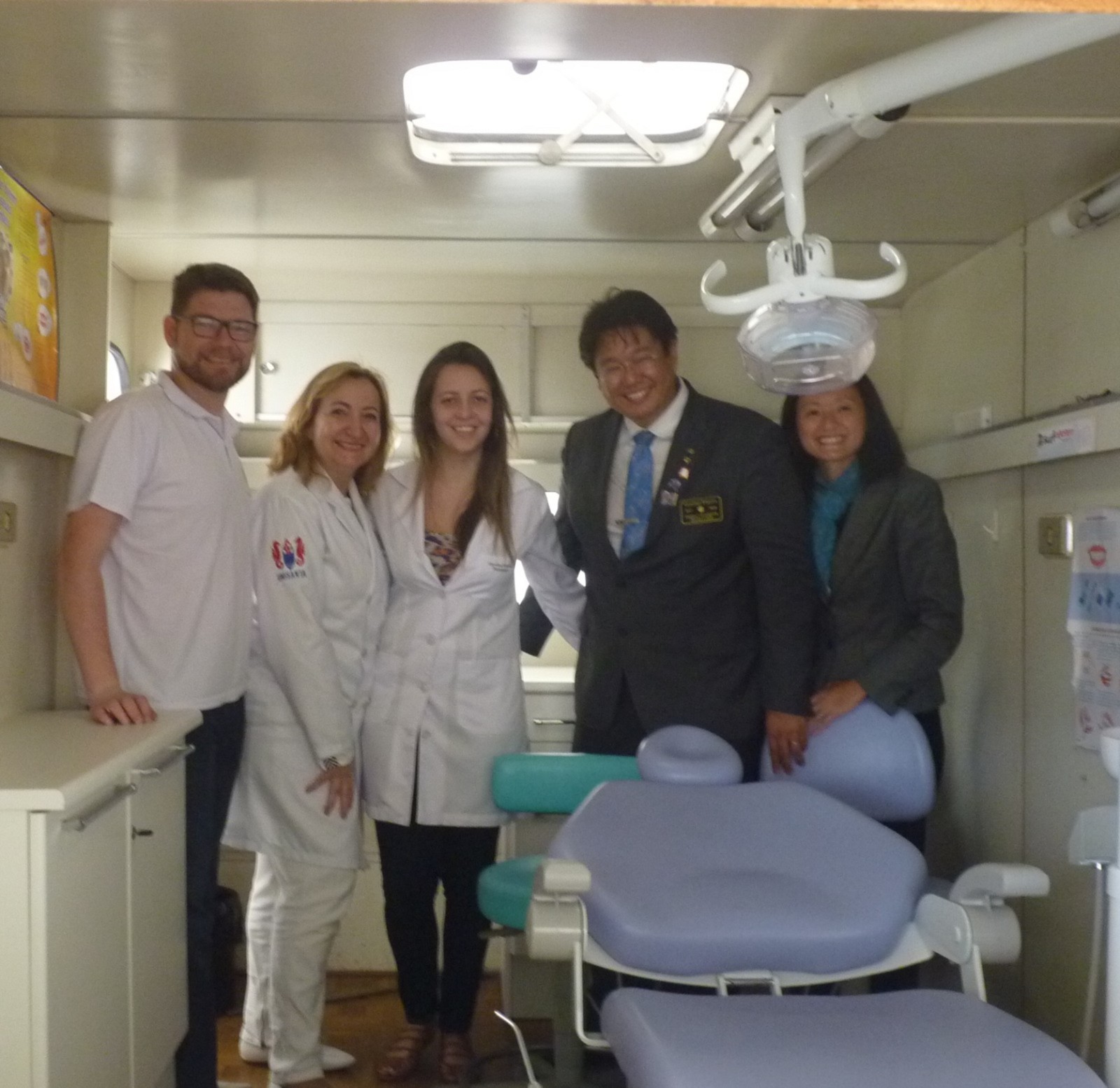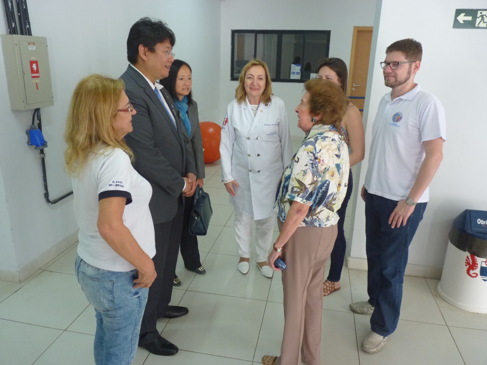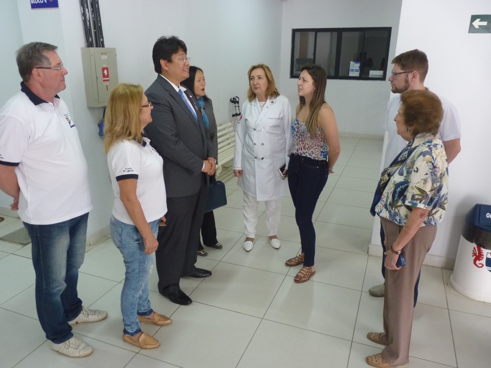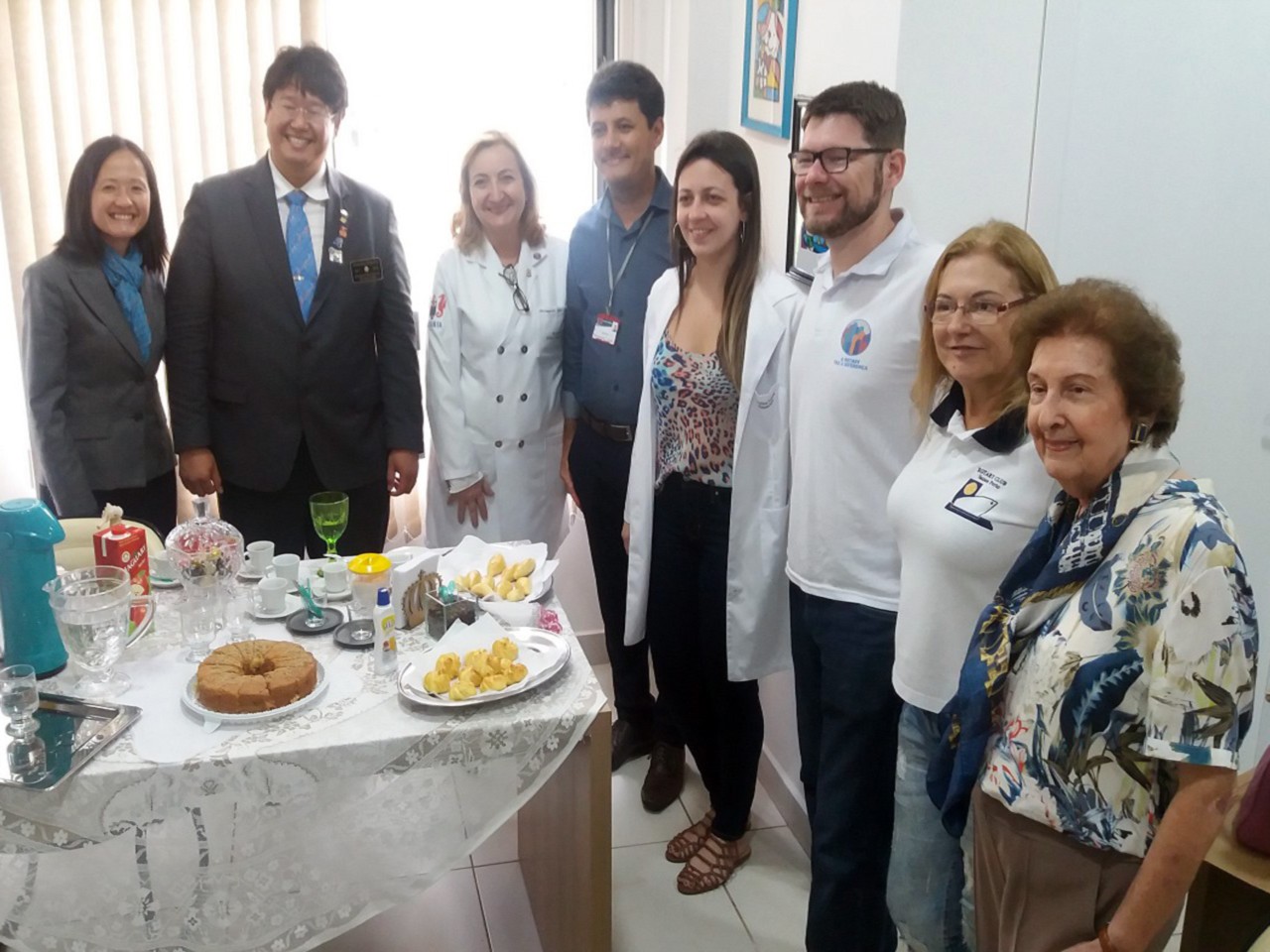 Em seguida, o governador seguiu para a visita do segundo projeto, localizado na Universidade Santa Cecília. A equipe rotária foi recebida pela diretora de Saúde da instituição, Dra. Caroline Teixeira, Profa. Emília Maria Pirilo, Marcelo Teixeira Filho, além de coordenadores e diretores dos cursos de Odontologia, Fisioterapia e Farmácia.