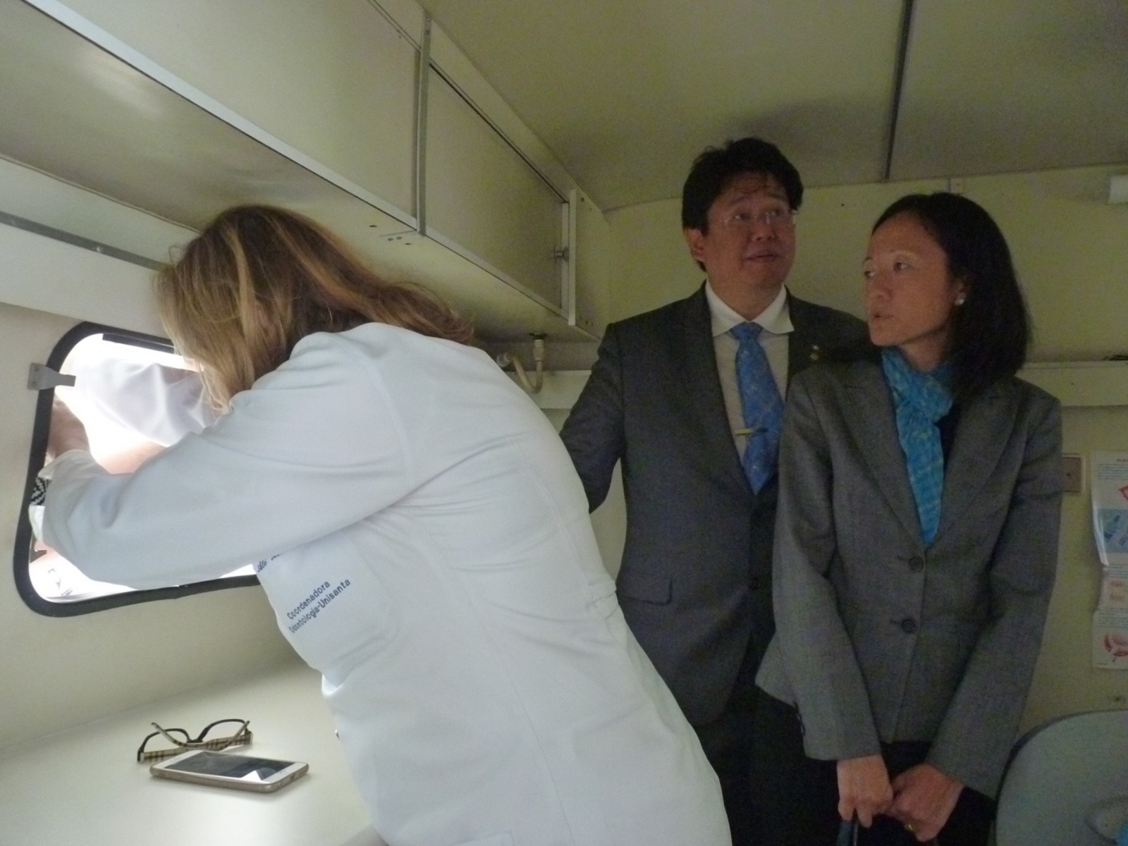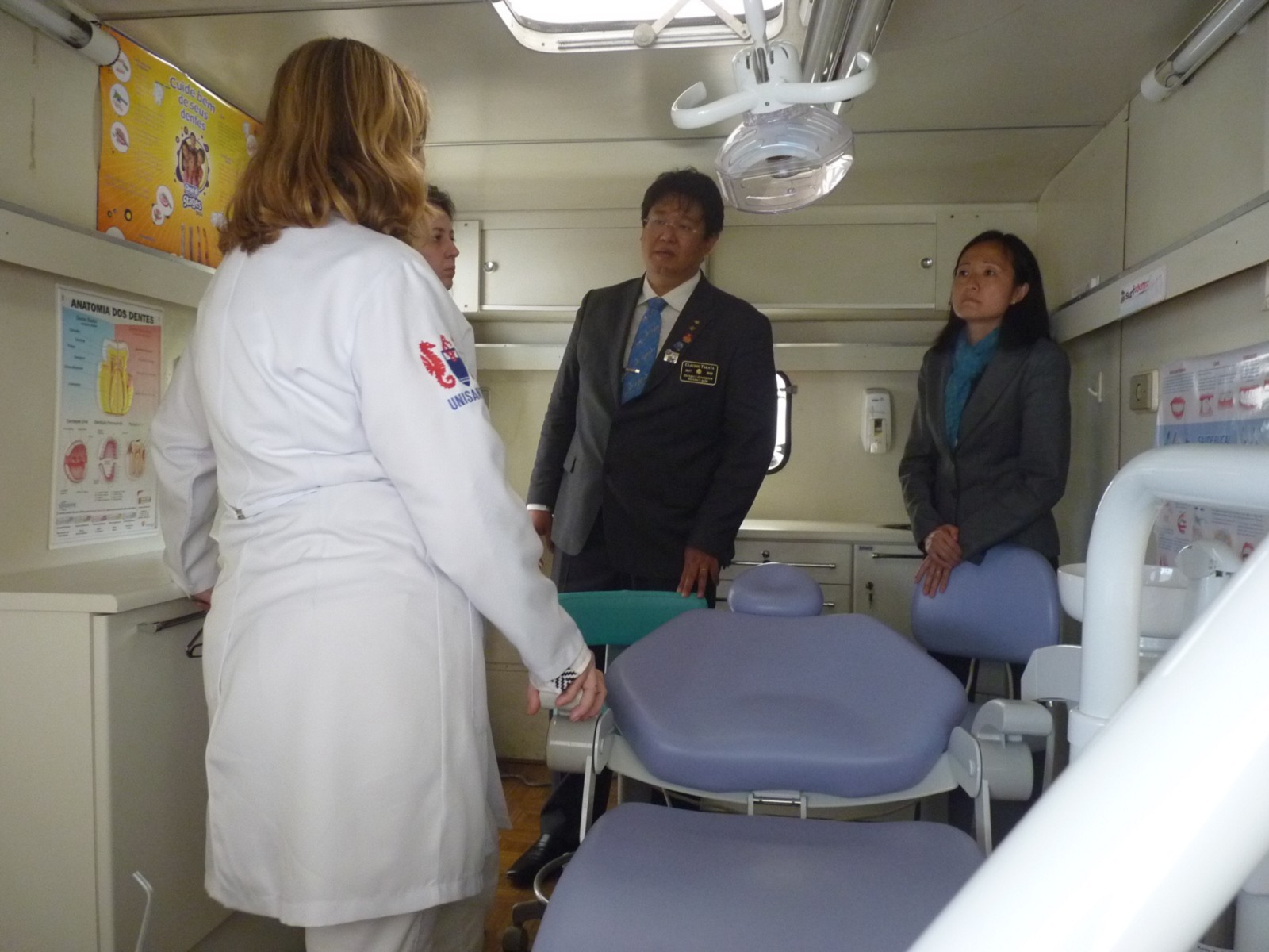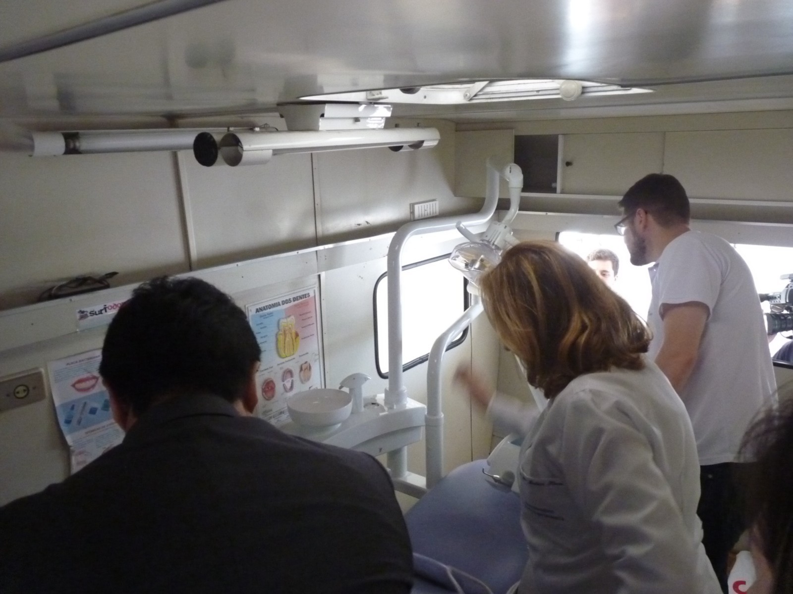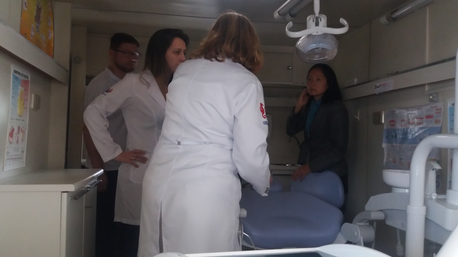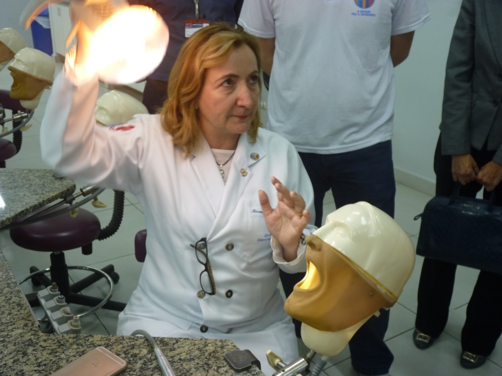 Rosângela Aló Maluza, coordenadora do curso de Odontologia, apresentou ao governador como funciona o consultório móvel disponível na parte externa da universidade e os amplos laboratórios. Segundo Rosângela, são atendidos gratuitamente cerca de 300 pacientes diários e 10 mil anuais, de toda a Baixada Santista.