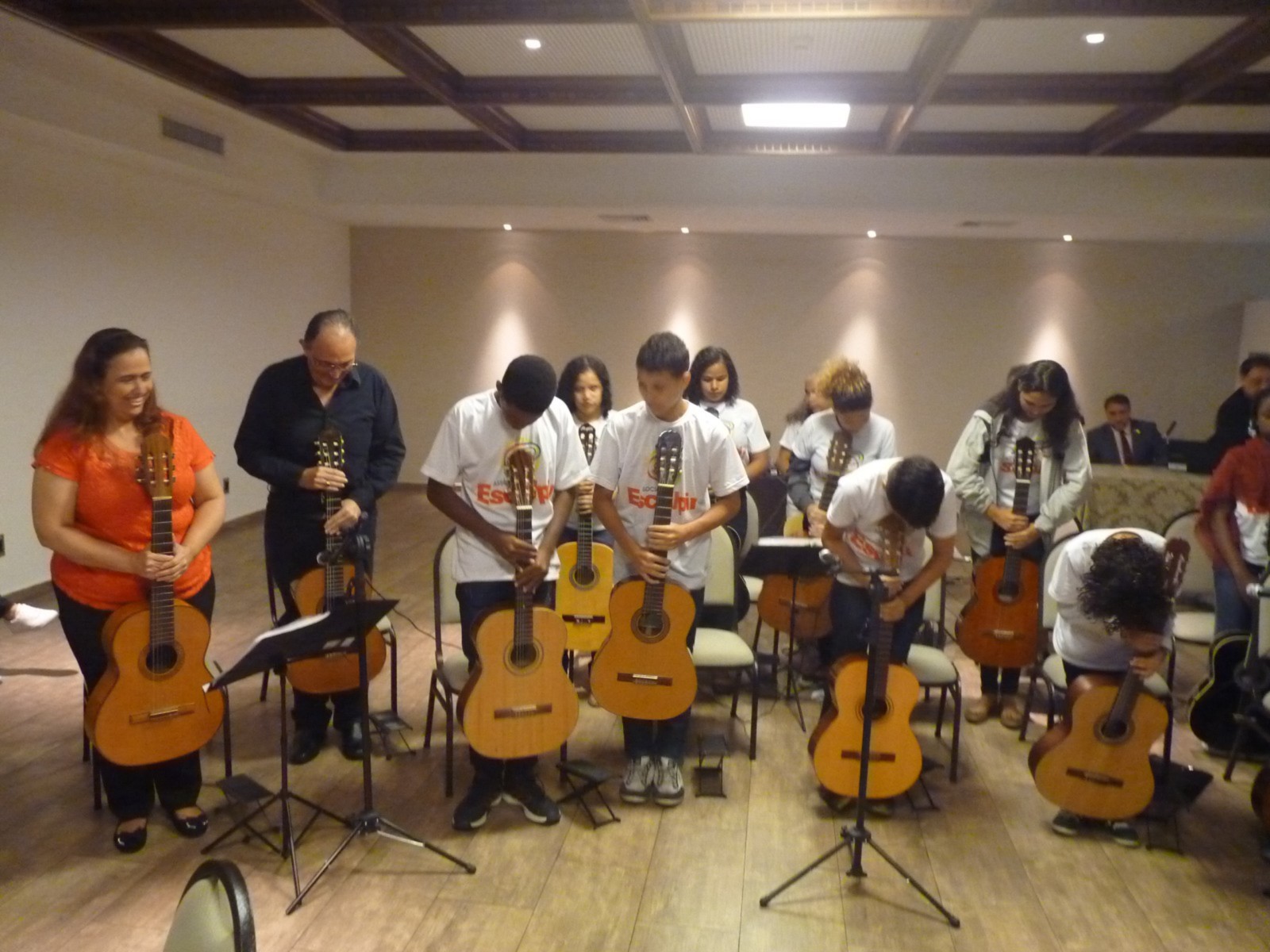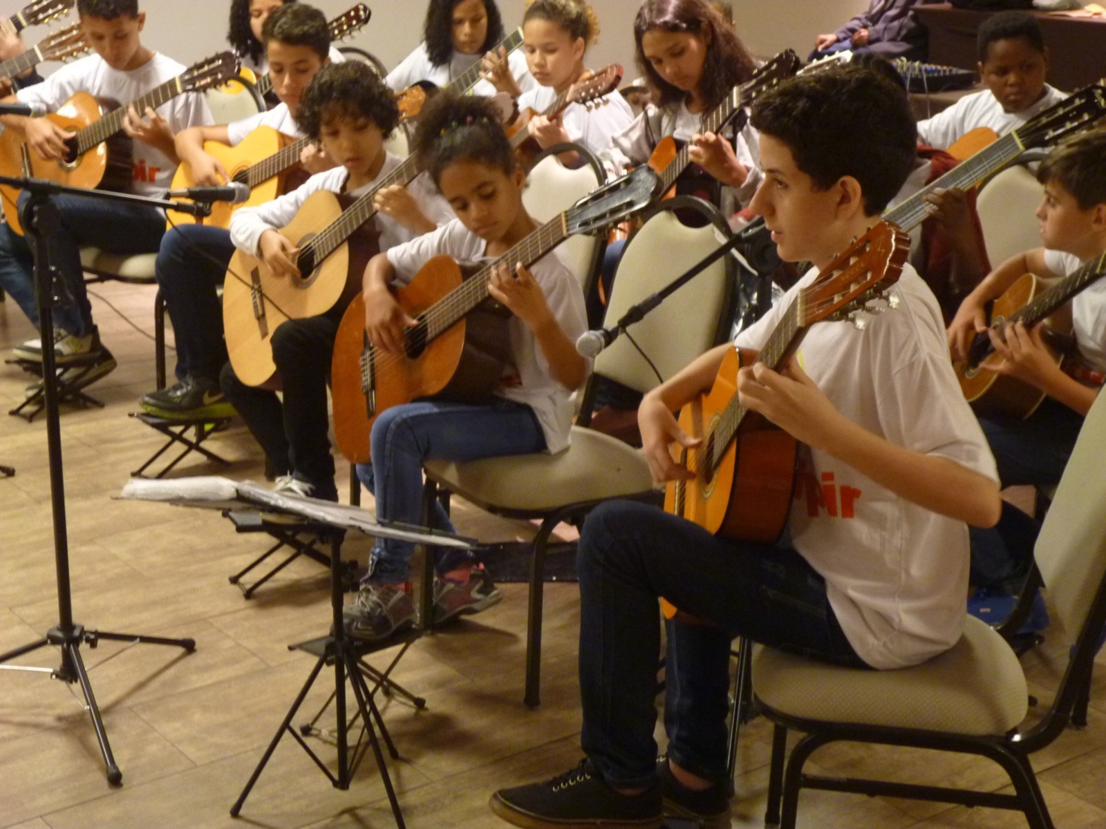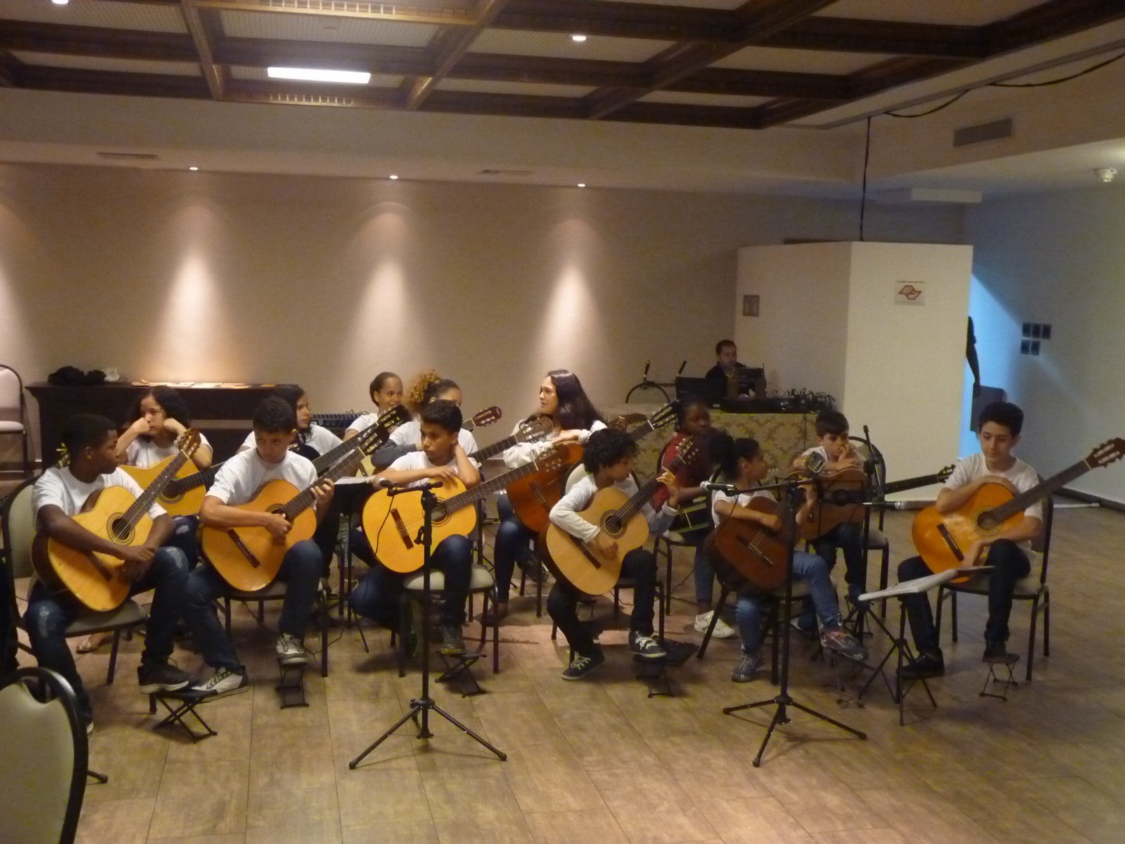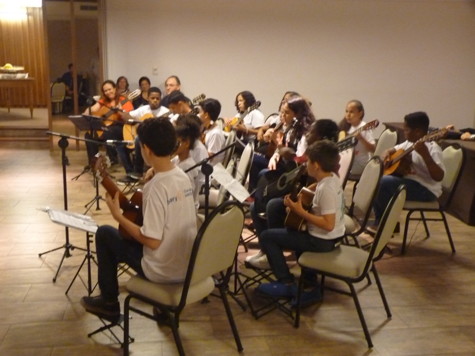 Durante o jantar, crianças e adolescentes do Projeto Esculpir realizaram uma bela apresentação musical tocando no violão conhecidas músicas populares brasileira.