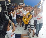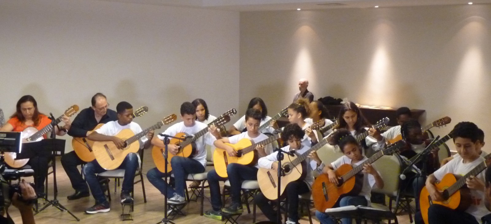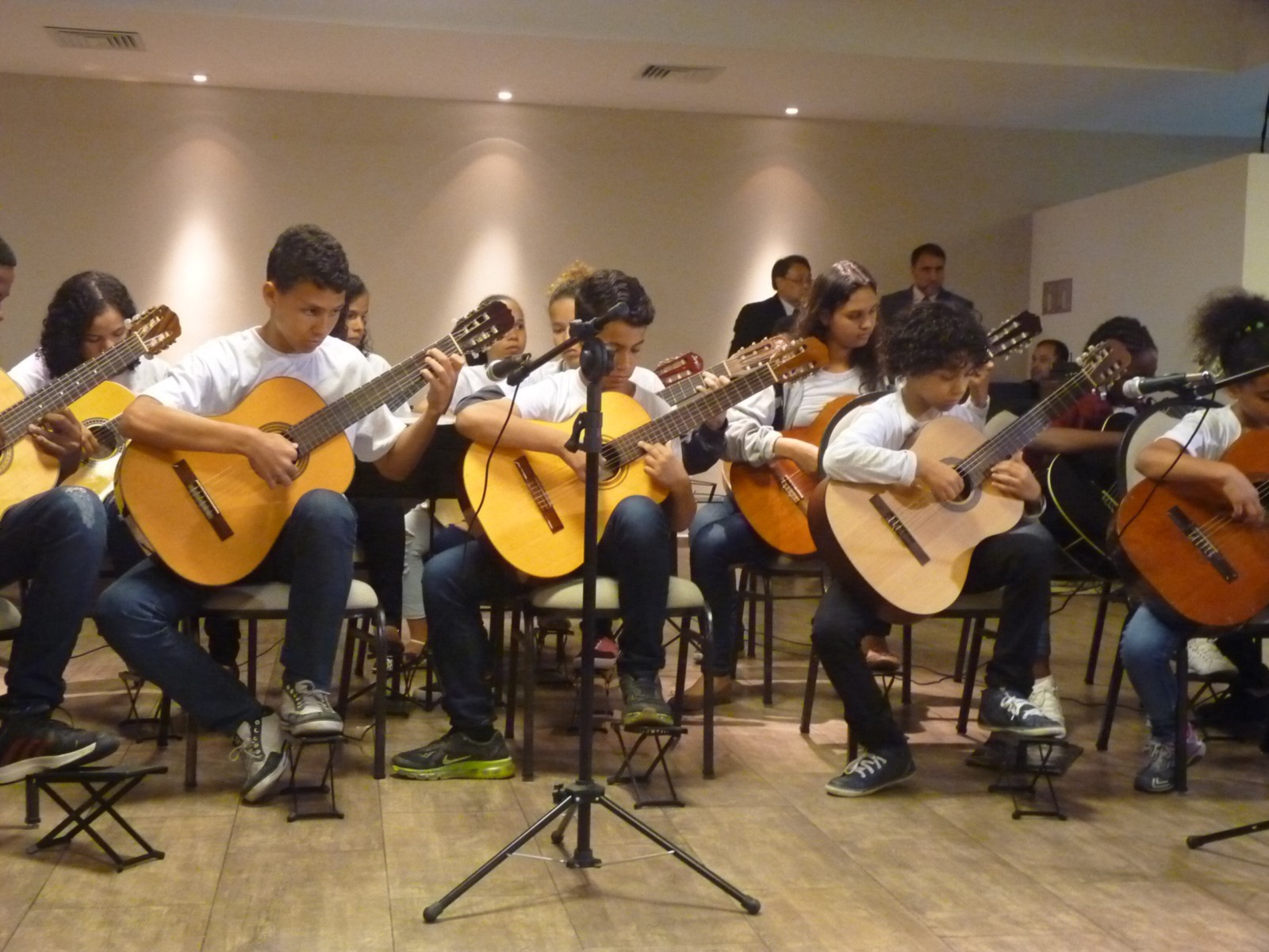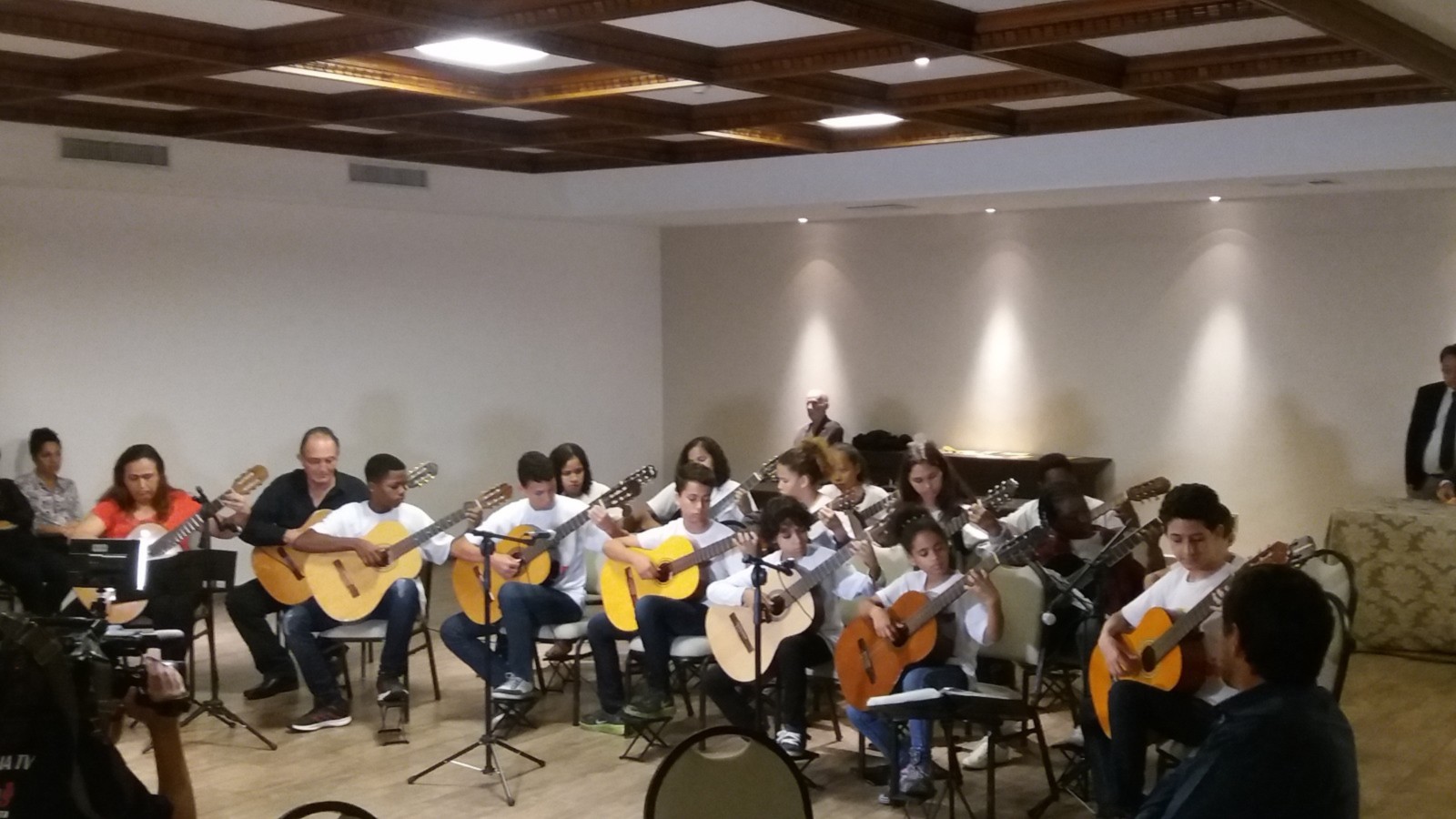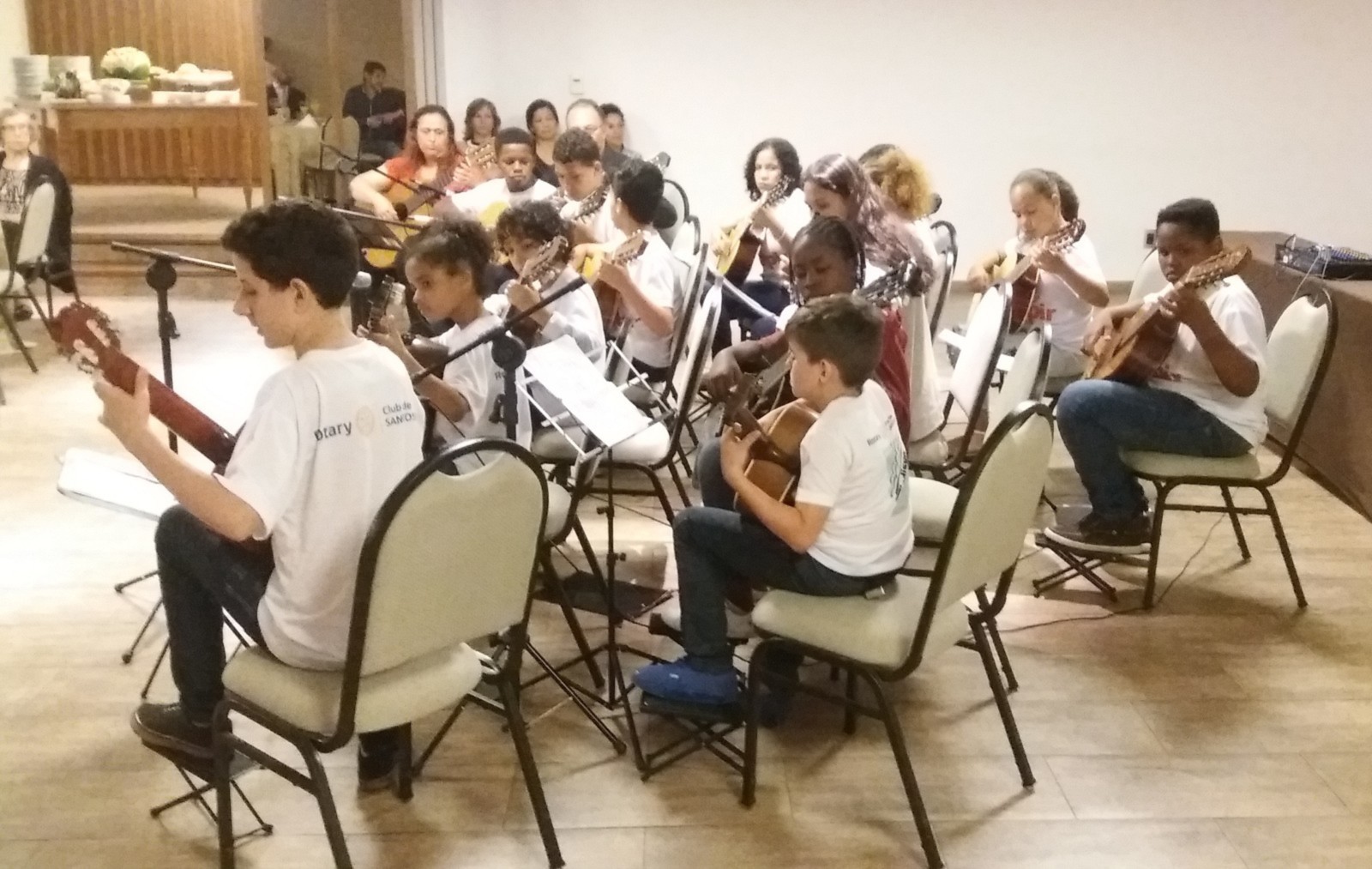 Durante o jantar, crianças e adolescentes do Projeto Esculpir realizaram uma bela apresentação musical tocando no violão conhecidas músicas populares brasileira.