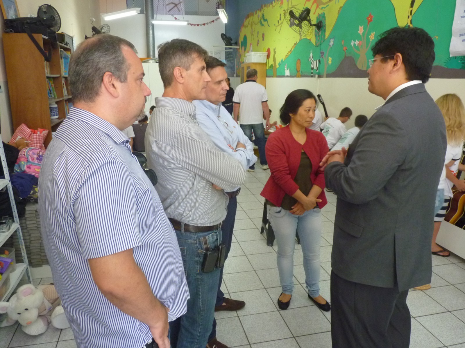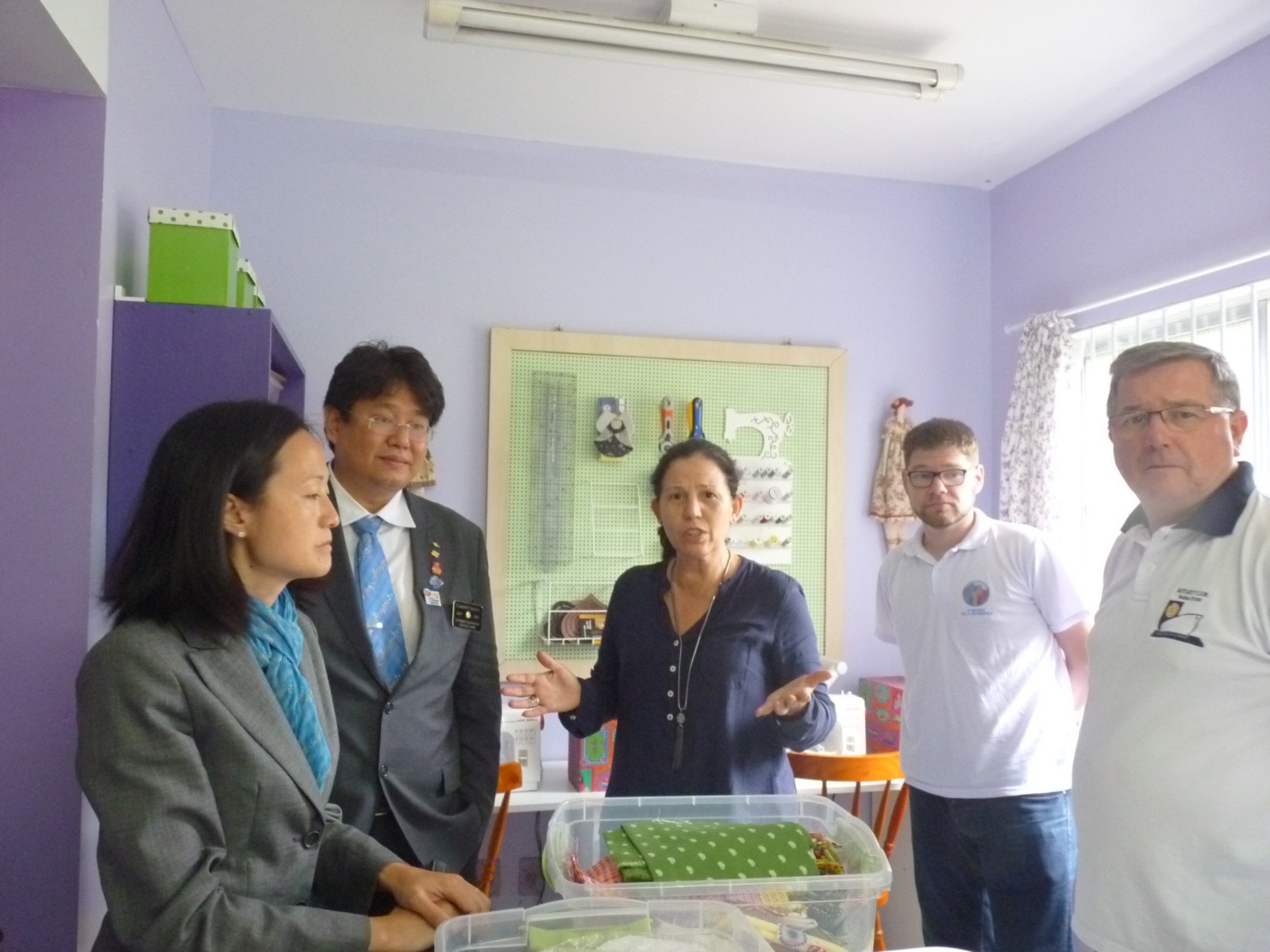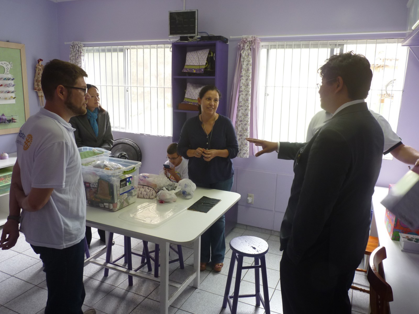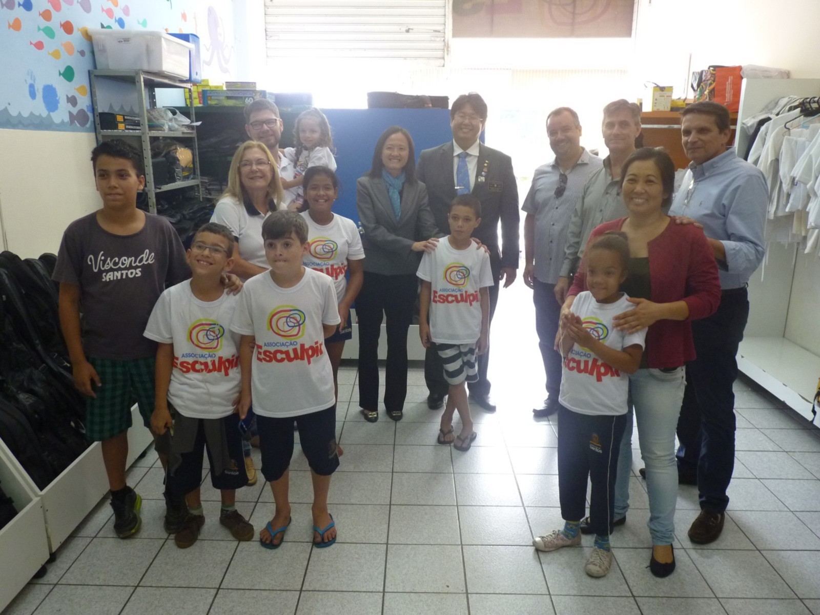 O governador foi conhecer um dos projetos permanentes desenvolvidos pelo RC Santos Porto. O início da visita aconteceu na Associação Esculpir. Apoiado pelo clube, a entidade oferece atividades complementares educacionais, artísticas e culturais.
