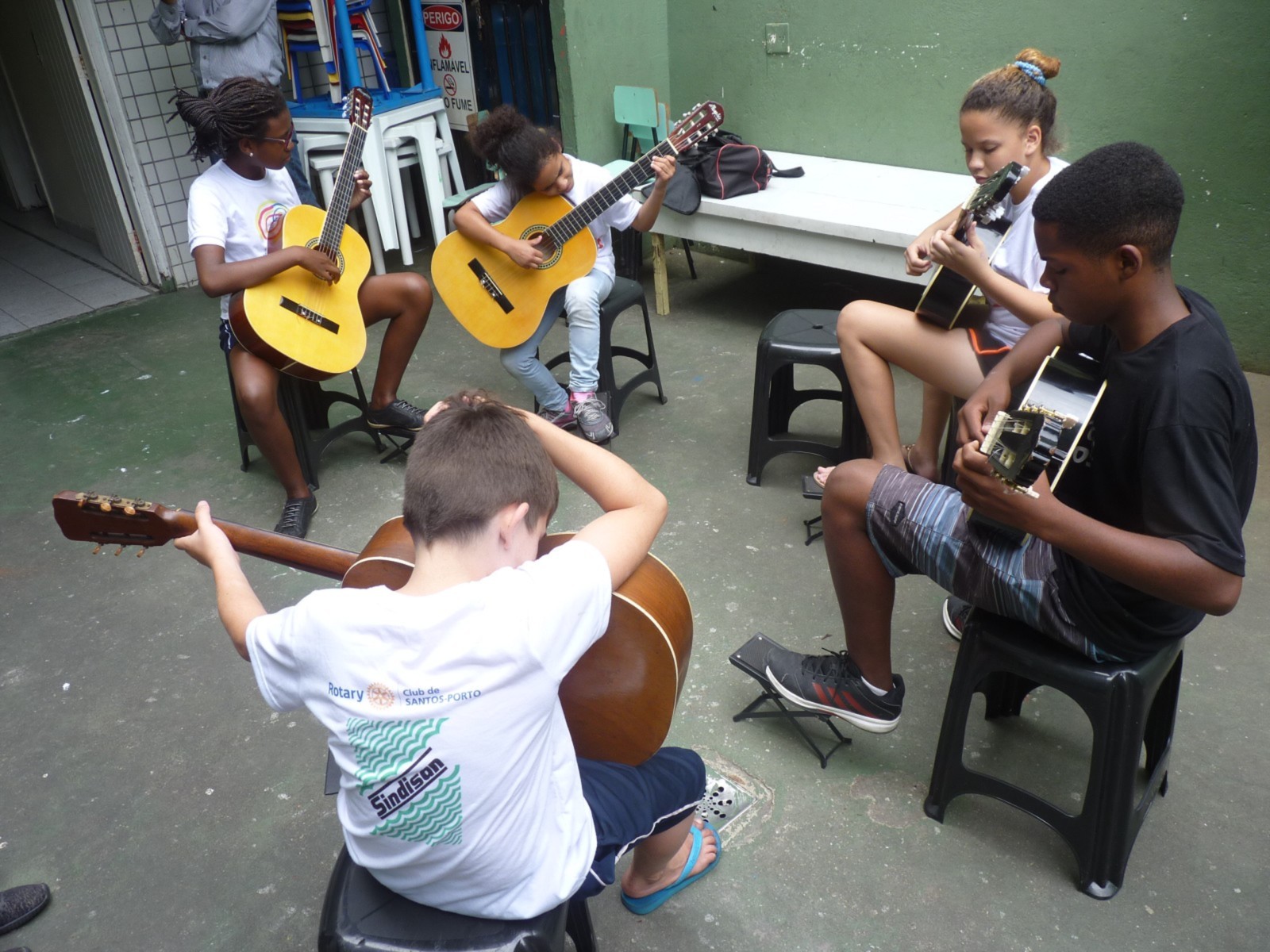 A instituição desenvolve reforço escolar, aulas de karatê, xadrez e violão, além de refeições saudáveis e diárias. Eles participam de cursos de patchwork em um mini ateliê, com a professora Giselle Mendes, além de incentivo à leitura e atividades recreativas. O violão é nosso carro chefe, está mudando a vida das crianças, conta Karina.
