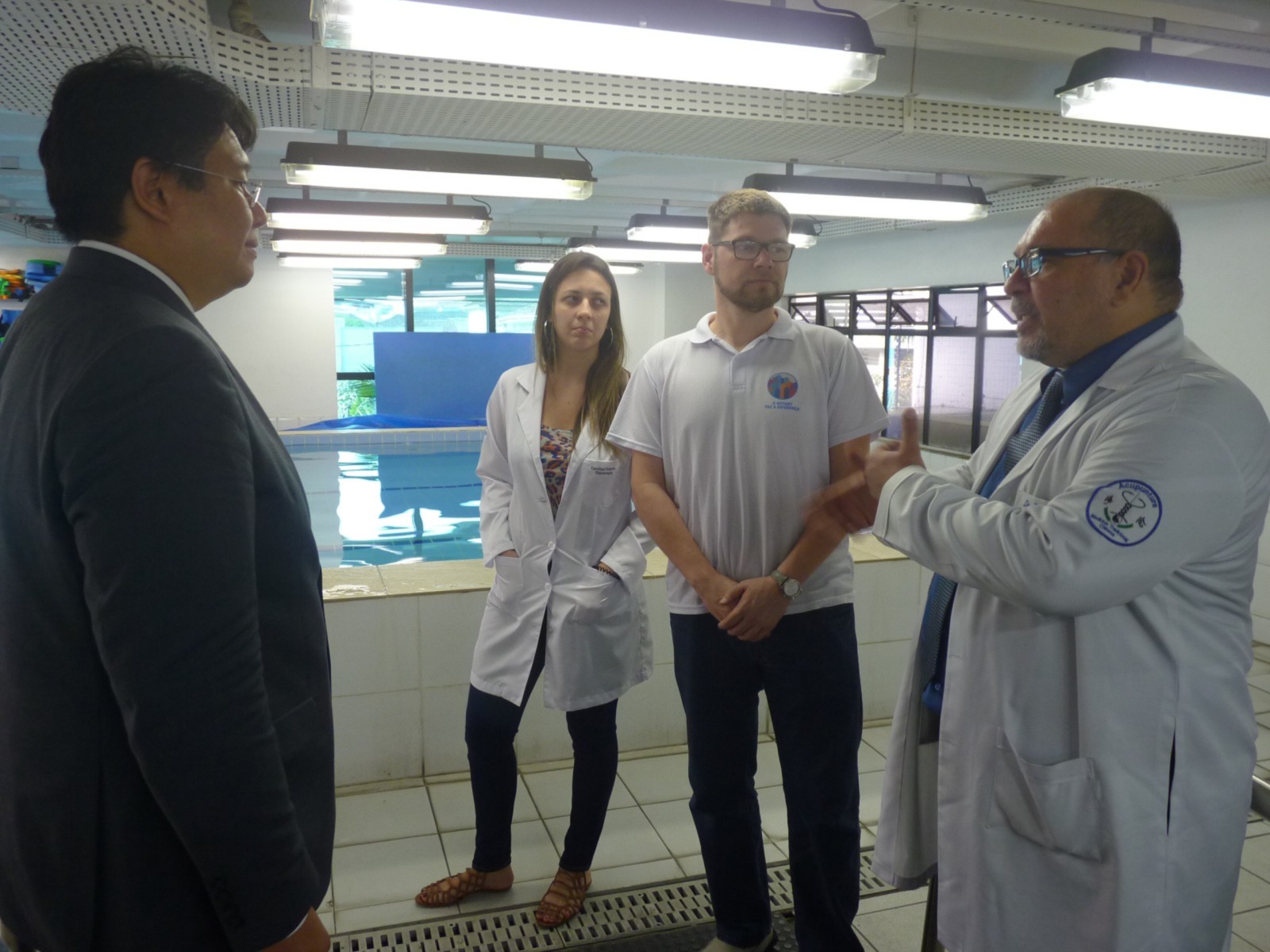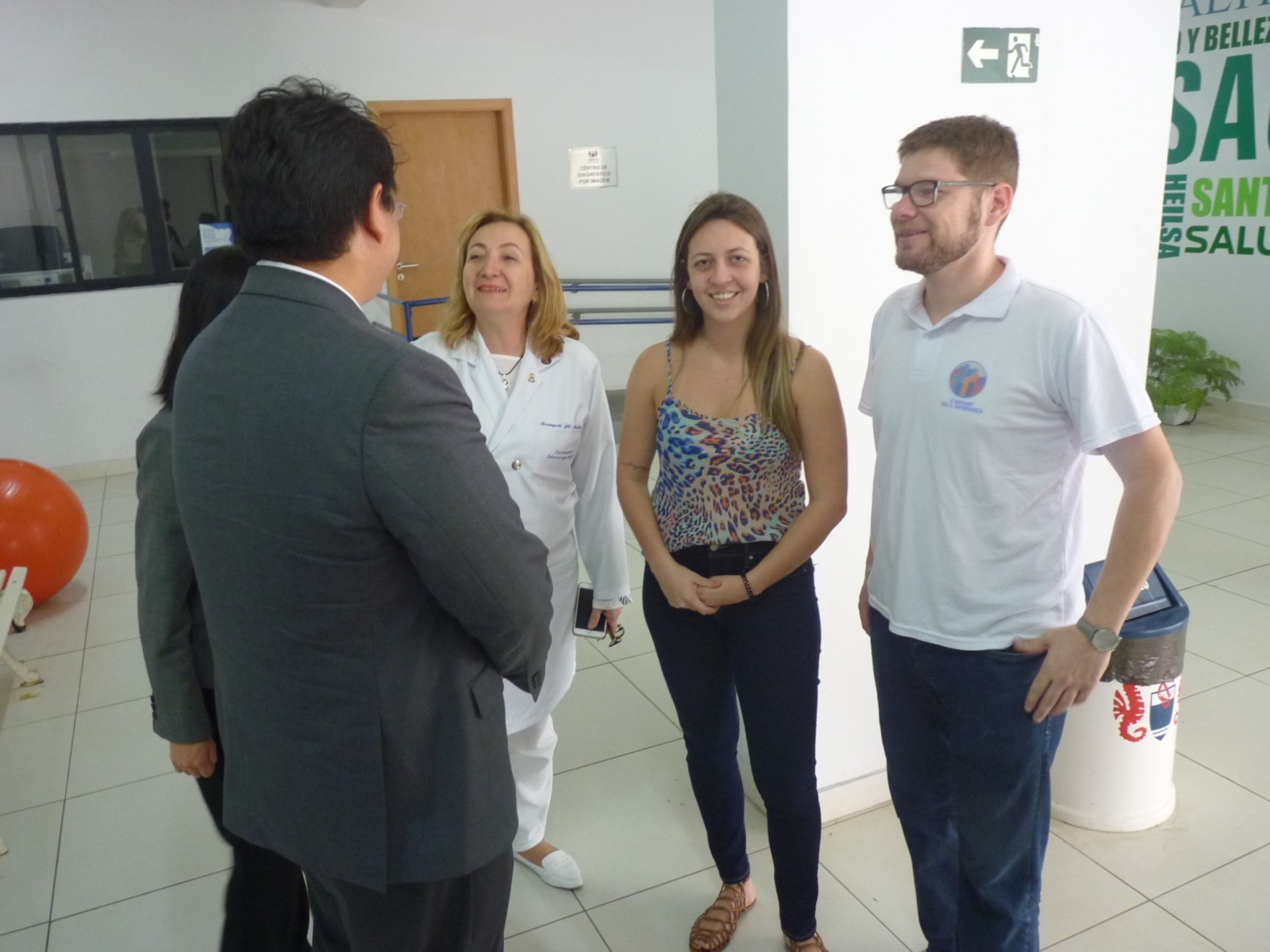 O doutor e diretor do curso de Fisioterapia, Ivan Chudar, acompanhado do coordenador e professor, José Luiz Marinho Portolez apresentou à equipe rotária todo o complexo laboratorial e terapêutico desenvolvido na universidade. Segundo Ivan, a comunidade é atendida de forma gratuita após efetuar um cadastro. Os estagiários do 3º, 4º e 5º ano atendem os pacientes com supervisão dos professores. São efetuados 45 mil atendimentos anuais.
