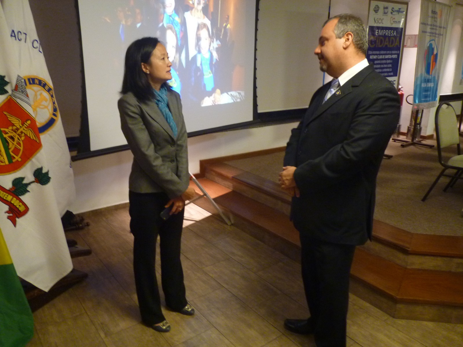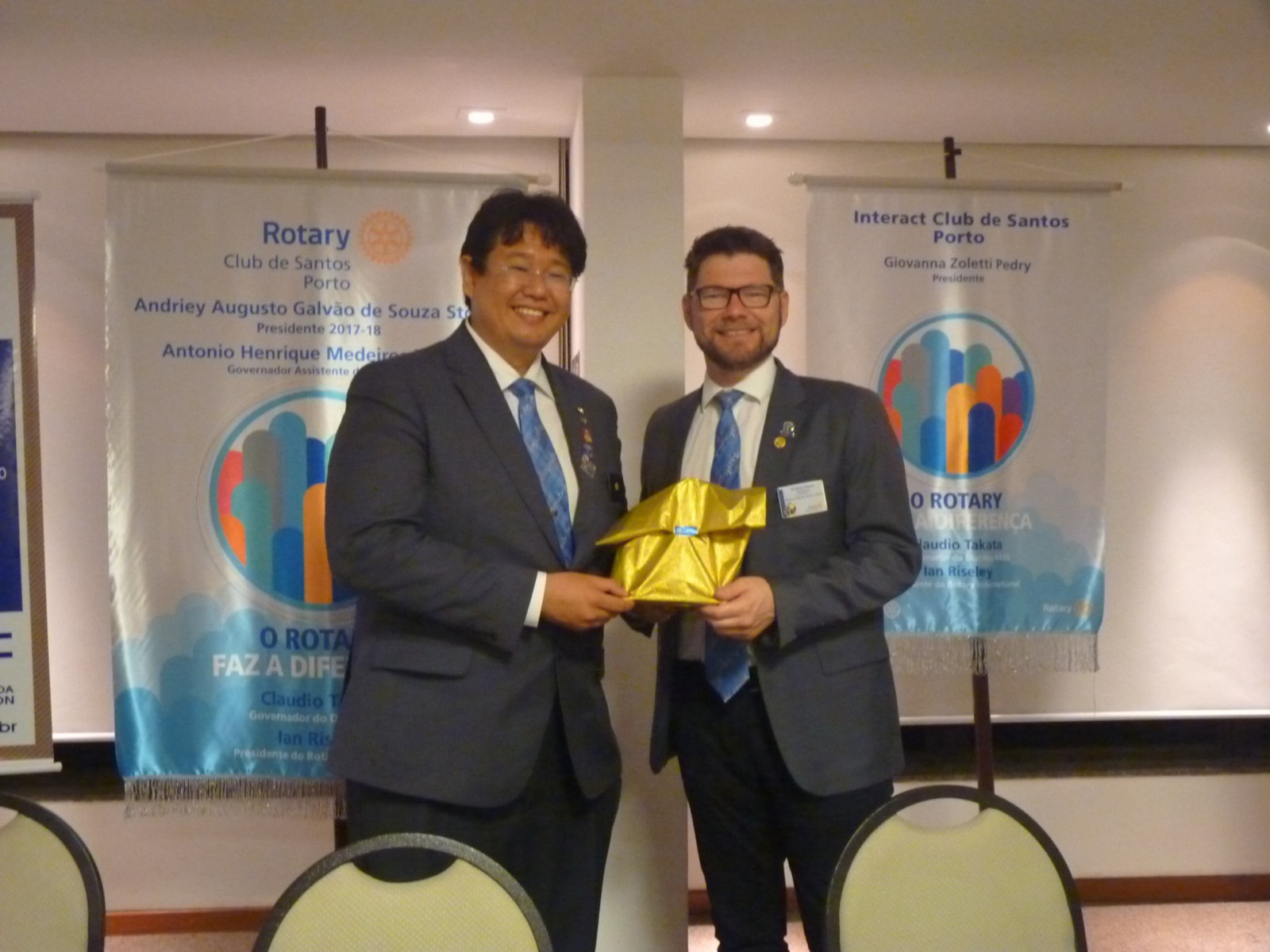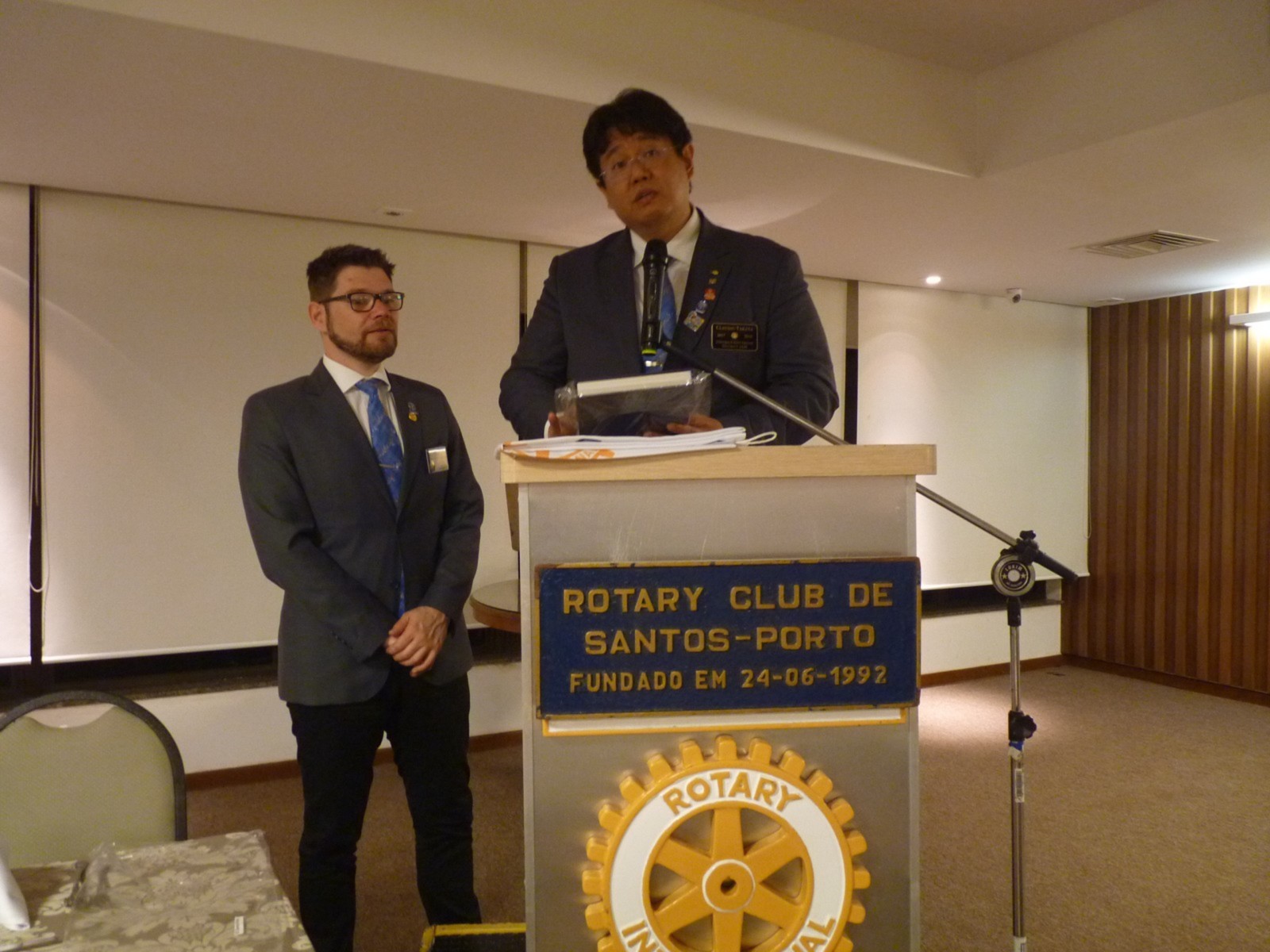 Na tarde do dia 17 de outubro, o Rotary Club Santos Porto recebeu a visita oficial do governador do Distrito 4420, Claudio Takata e sua esposa Marie. A festiva foi realizada no Mendes Plaza Hotel, em Santos. O evento reuniu autoridades rotárias, locais, membros da equipe distrital, familiares e amigos.