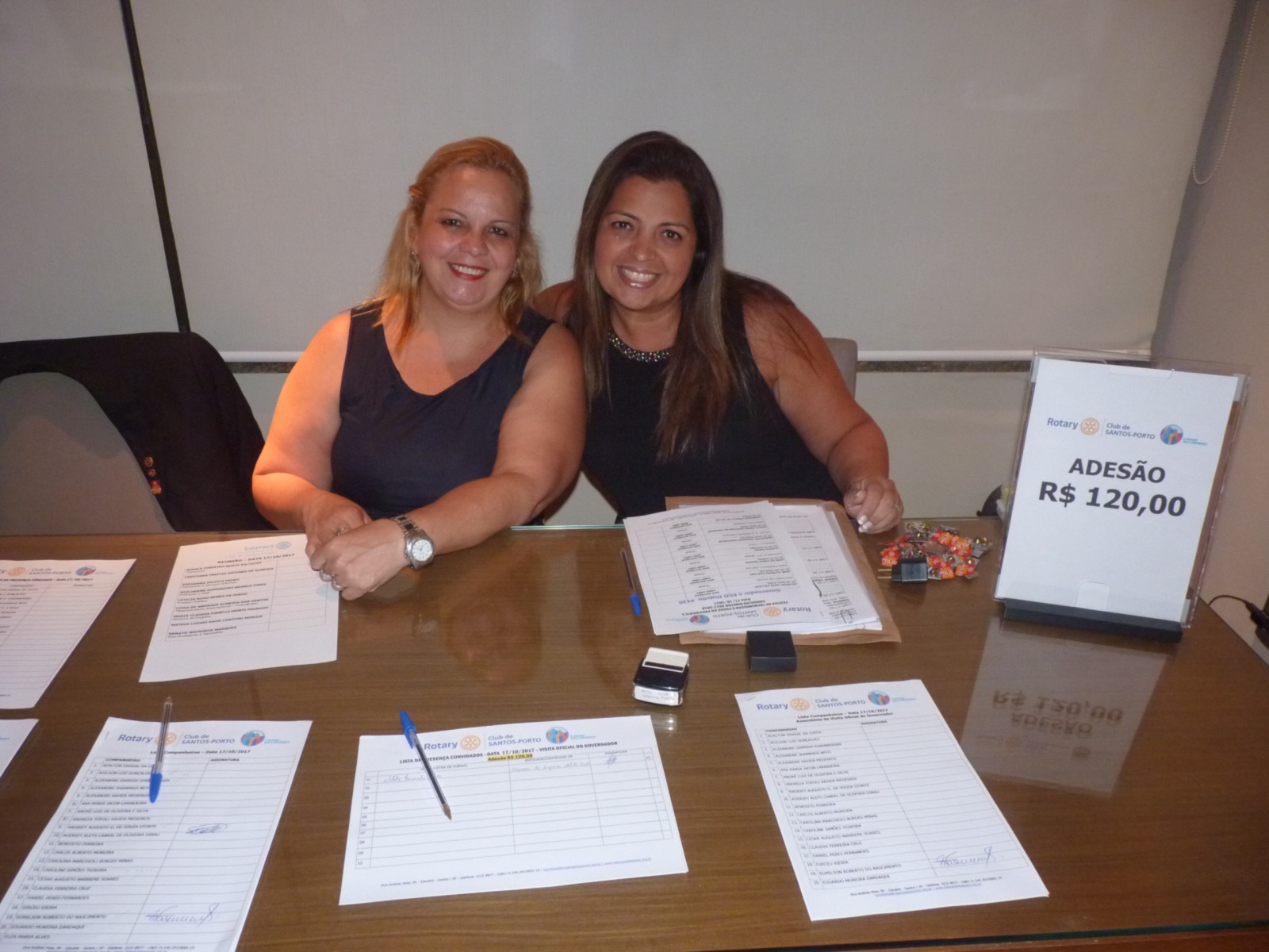 O presidente aproveitou a cerimônia para apresentar as intercambistas acolhidas pelo RC Santos Porto, Fernanda Montanhez Montenegro, mexicana do Distrito 4170, Rotary Club International Xinantecati e Rebeca Wi, taiwanesa do Distrito 3490, Rotary Club International Ying Ko.
