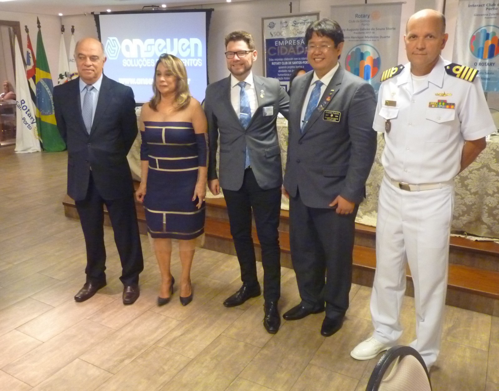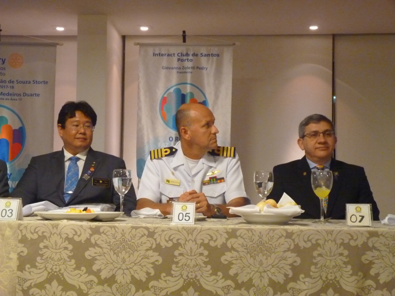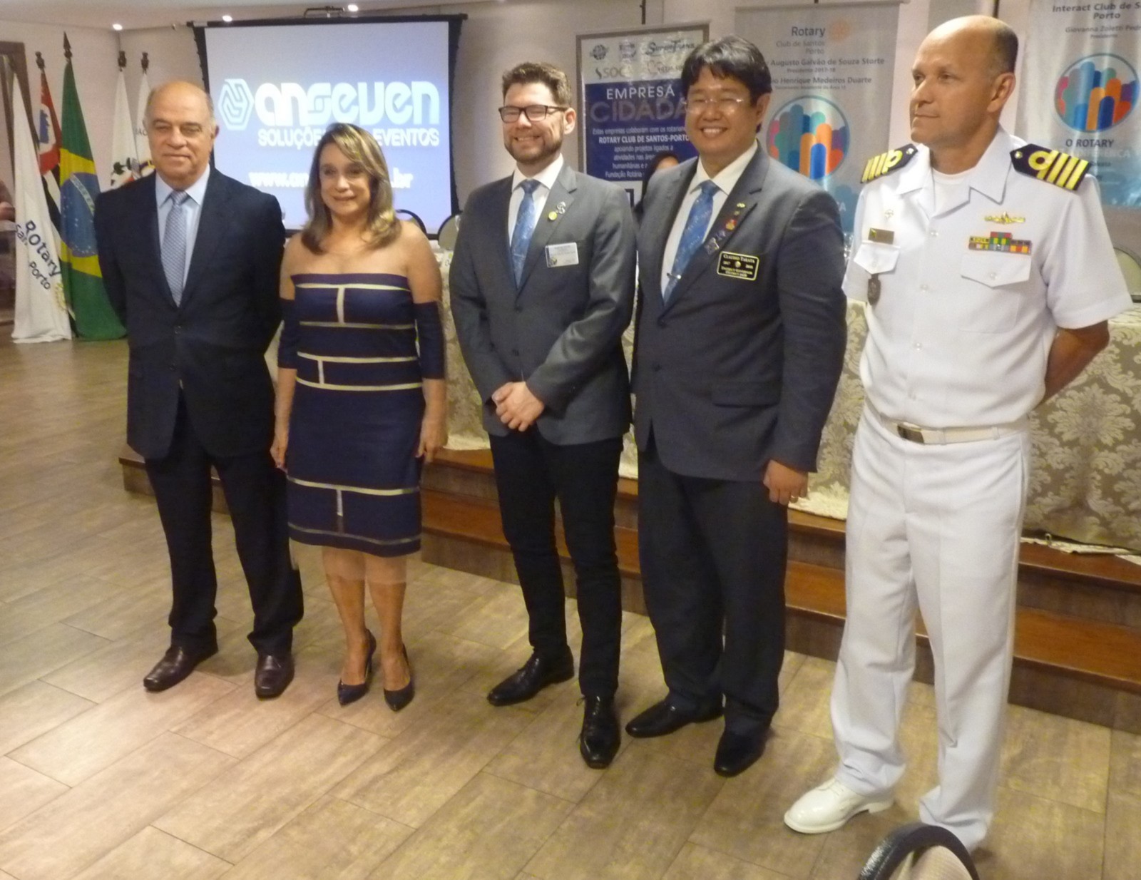 O evento reuniu autoridades rotárias como Ronaldo Varella, governador 2016/17, autoridades militar e civil, Alberto José Pinheiro de Carvalho, Capitão de Mar e Guerra do Estado de São Paulo e Omar Silva Júnior, secretário de Assuntos Portuários, Indústria e Comércio de Santos.