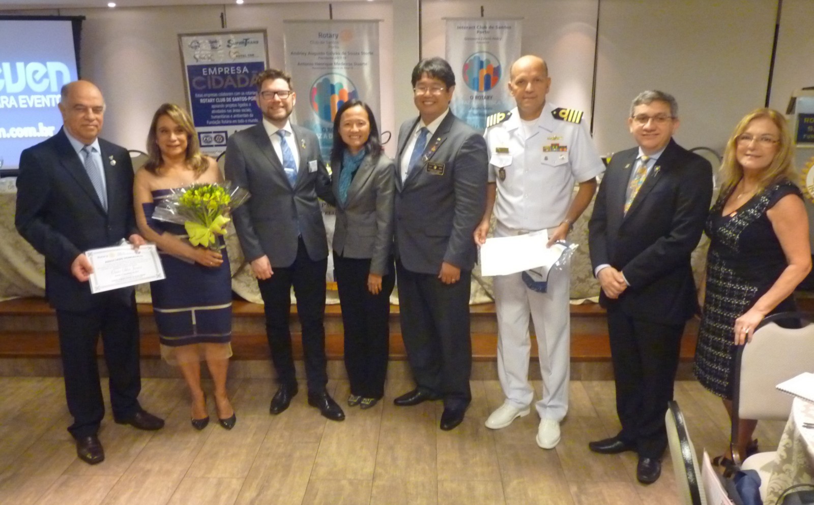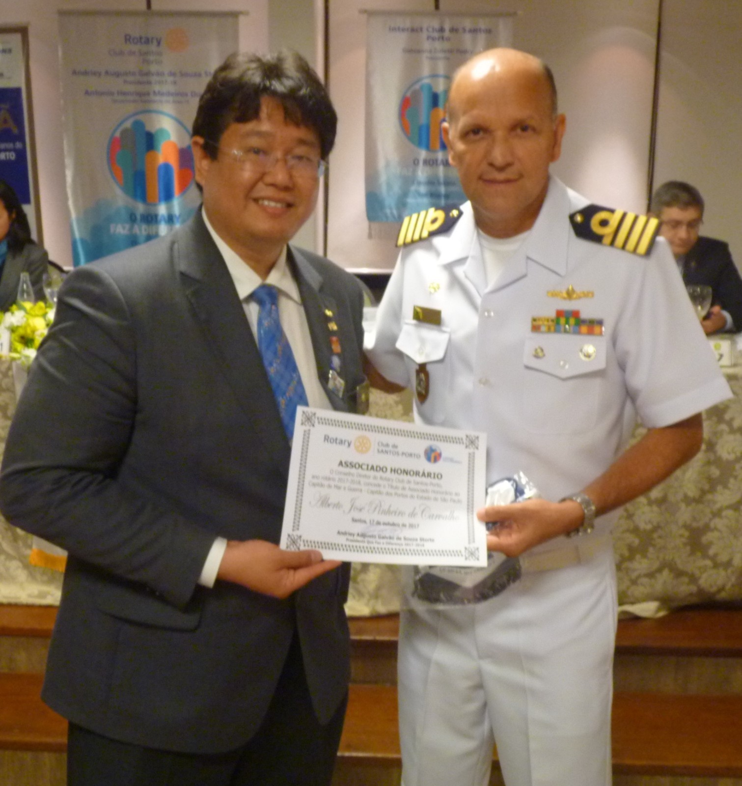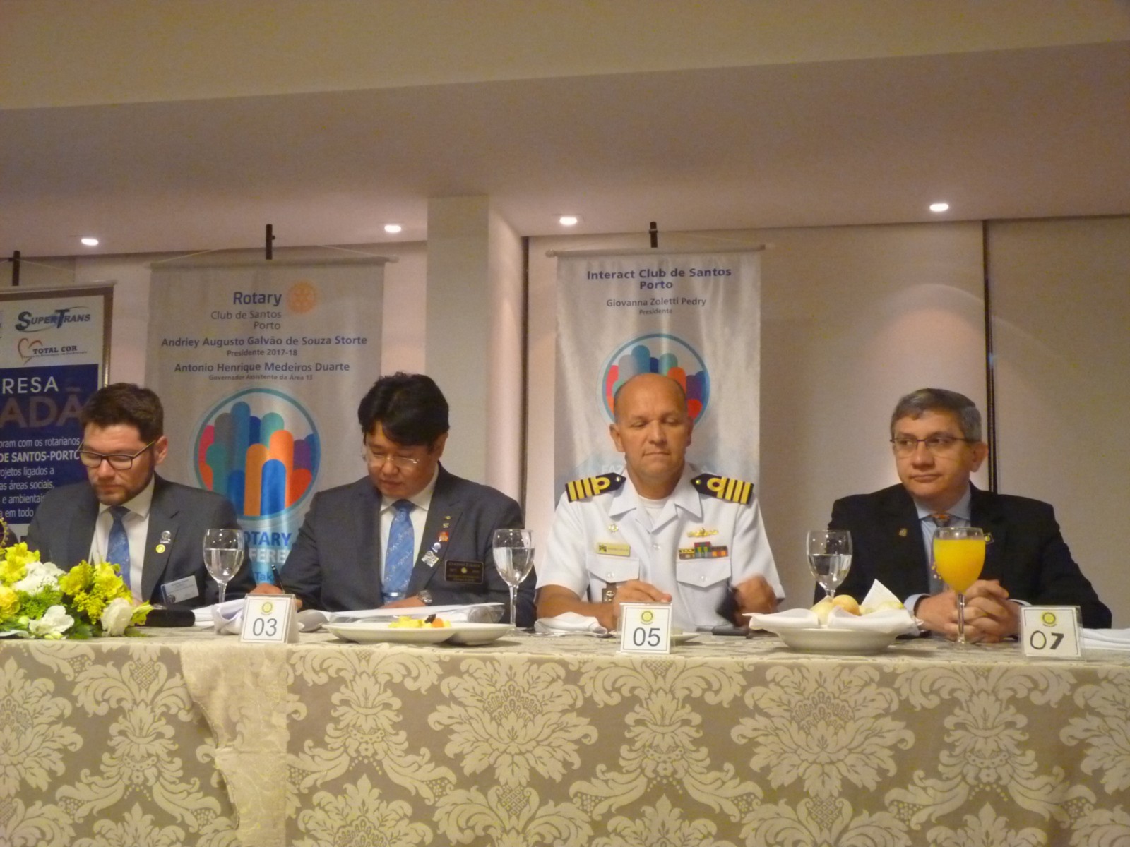 O evento reuniu autoridades rotárias como Ronaldo Varella, governador 2016/17, autoridades militar e civil, Alberto José Pinheiro de Carvalho, Capitão de Mar e Guerra do Estado de São Paulo e Omar Silva Júnior, secretário de Assuntos Portuários, Indústria e Comércio de Santos.