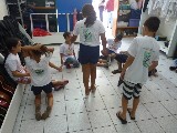 Segundo Karina, coordenadora do projeto, são assistidas cerca de 70 crianças e adolescentes, entre 6 e 14 anos, divididas no período da manhã e tarde. Frequentar a escola regularmente é a única exigência para que as crianças participem das atividades. Foi uma forma que o projeto encontrou de diminuir a evasão escolar na região onde atua. Temos o compromisso de levar e buscar na escola algumas crianças que participam das nossas atividades. Já faz parte da nossa rotina, oferecendo tranquilidade aos pais que trabalham o dia todo. Somente os nossos monitores ou os próprios têm autorização para pegá-los no colégio.